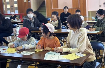 前年11月に学童保育の企画で訪問した林小学校で、こんどは学年の親子行事としての教室を行ないました。