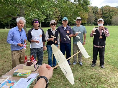 つちうら紙飛行機クラブ月例会は7・8月が連続で荒天中止となったため、7月の課題機「後退翼機」は省略、9月の月例会で8月課題機「ミスビードル」と当月課題機「レーサー555」の2種目を行ないました。 この例会では通常は7回戦で記録を取るのですが今回は2種目実施のため各種目とも5回戦としました。 「ミスビードル」では藤田親子が初のワンツーフィニッシュを実現しました。 |